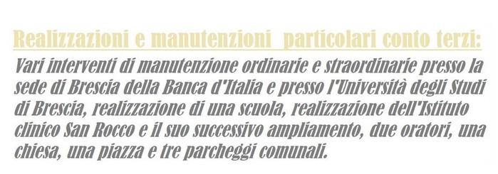 | 069) | 2001 - 2005 | Conto terzi, vari interventi di manutenzione straordinaria della sede di Brescia della Banca d'Italia. | Brescia, Corso Martiti della Libertà |